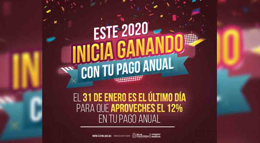 MEXICALI, B.C., enero 29 de 2020 / Redacción.- Destacando los altos beneficios que representa dicha promoción para la economía familiar, la Comisión Estatal de Servicios Públicos de Mexicali (CESPM) hizo un exhorto a los usuarios del servicio de agua potable, a aprovechar los días que restan al mes de enero para hacer el pago anual anticipado de sus consumos, para obtener el descuento del 12 por ciento en su cuenta.