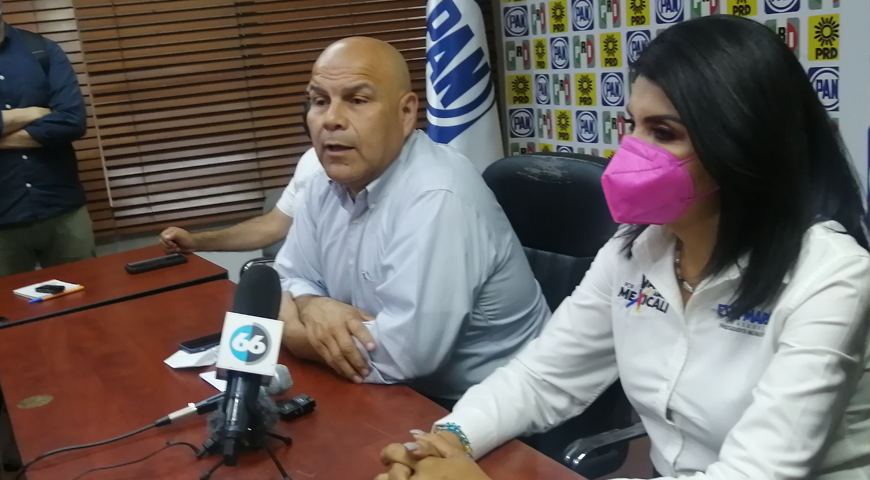 Mexicali Baja California a 24 de mayo de 2021 / Redacción.- En rueda de prensa el Presidenta del Comité Directivo Estatal del PAN, acompañado de la candidata a la alcaldía de Mexicali, Eva María Vásquez, Andrés de la Rosa, secretario general del PAN y el licenciado Sergio Moreno Herrejón, hizo un llamado a los seguidores del ing. Hank para que se sumen al mejor proyecto que es el de nuestra candidata, Lupita Jones, quien, a pesar de haber tenido una campaña austera, supo hacer una campaña de calidad, de propuestas y ha logrado sumar y crecer en las preferencias del electorado”.