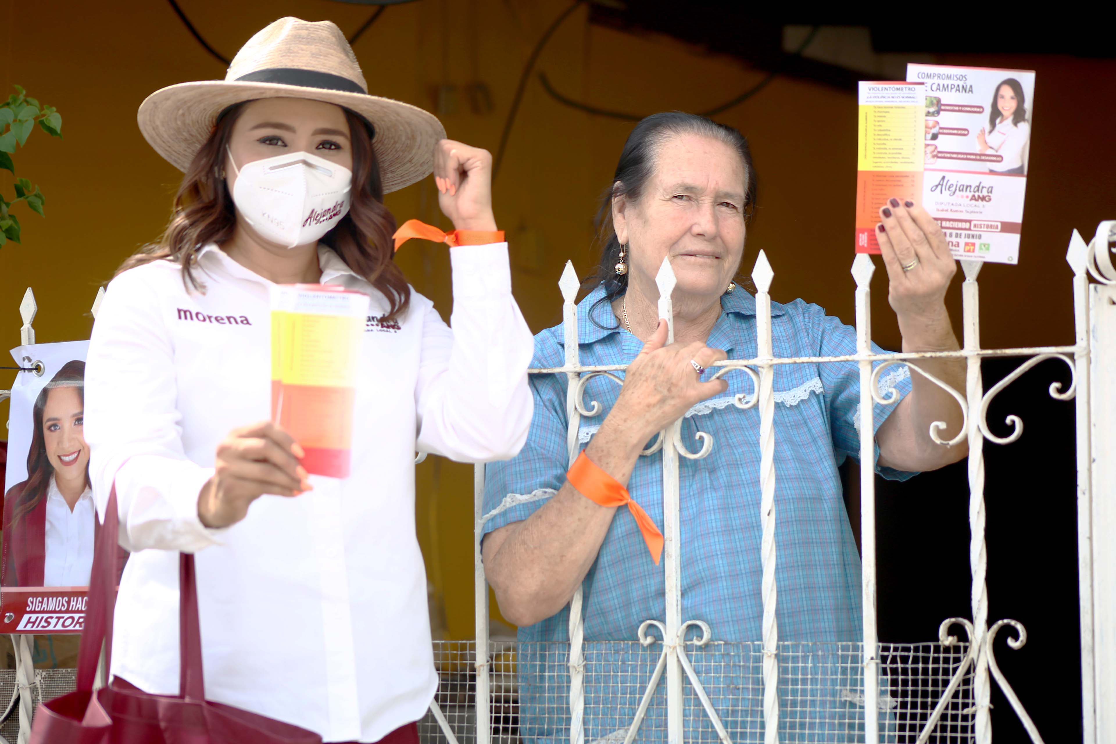 Alejandra Ang Hernández, consiente de la problemática por la que pasan las mujeres en relación a la violencia en todas sus formas, decidió llevar el mensaje, además de presentar su plan de trabajo una vez que el voto le favorezca en el Congreso del Estado, además de entregar una copia del violentometro, escala que mide el nivel de violencia en el entorno familiar.