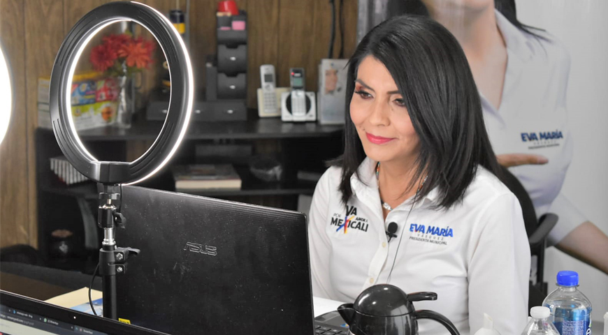 Mexicali B.C. a 25 de Mayo de 2021 / Redacción.- Eva María Vásquez Hernández, candidata de la coalición Va X Baja California a la Presidencia Municipal de Mexicali, participó en la transmisión virtual a través de las redes sociales de la Asociación de la Micro, Pequeña y Mediana Empresa de México A.C., “Diálogos AMIPYMMEX”, foro diseñado para el sector emprendedor y de negocios.