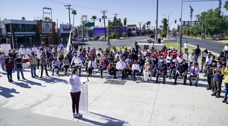 MEXICALI. B.C. A 28 DE MAYO 2021 / Redacción.- Frente al monumento a Benito Juárez en Mexicali, la candidata a la gubernatura de la coalición “Juntos Haremos Historia en Baja California”, Marina del Pilar Avila Olmeda, presentó este jueves 27 de mayo una serie de propuestas a desarrollar durante sus primeros 100 días como gobernadora del estado, si la voluntad popular materializa el triunfo de la Cuarta Transformación expresado en todas las encuestas.