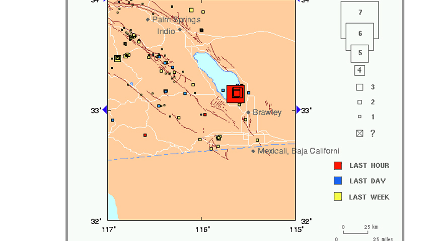 El epicentro se ubicó a 11 kilómetros al oeste de Calipatria en el Valle Imperial a una profundidad de 5.8 km.