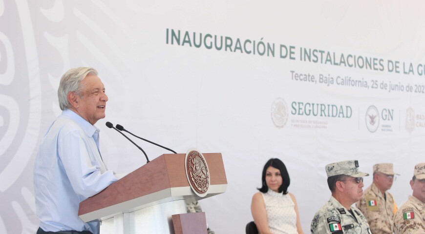 Lo anterior ocurrió en la ceremonia formal de inauguración del cuartel de la Guardia Nacional, ubicado en la zona de El Hongo (colonia Luis Echeverría), en la Delegación Municipal La Rumorosa, del municipio de Tecate, a donde llegó el presidente de la República, luego de haber estado durante la mañana en Mexicali.