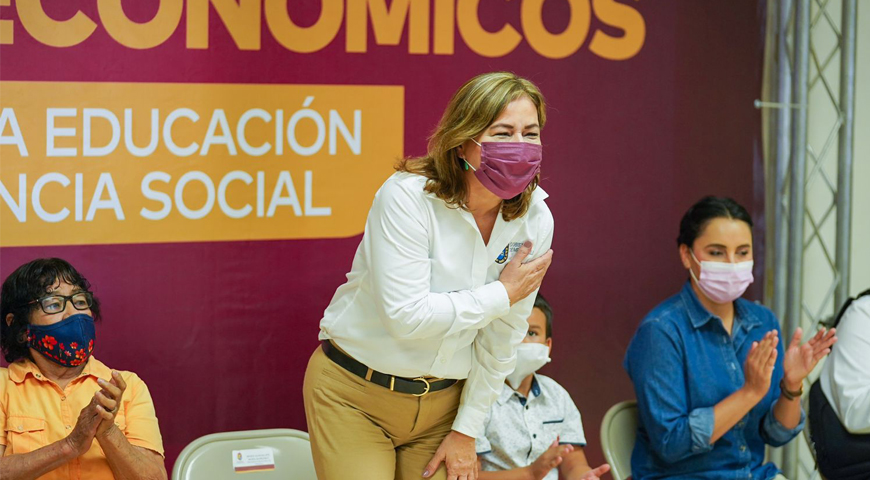 San Felipe B.C. a 29 de junio del 2021 / Redacción.- En gira de trabajo por el puerto de San Felipe, la Alcaldesa de Mexicali, Lupita Mora Quiñónez, entregó estímulos económicos a estudiantes de distintos niveles educativos y población vulnerable que residen en el puerto.