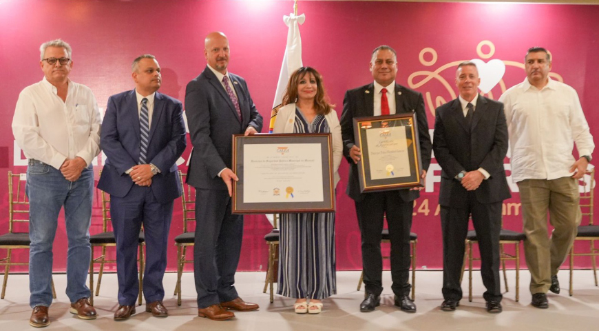Posteriormente, el presidente de la Comisión de Acreditación para las Agencias que aplican la Ley, Craig Hartley entregó el reconocimiento de la certificación a la alcaldesa de Mexicali, Norma Bustamante y al director de la DSPM, Pedro Ariel Mendívil García.