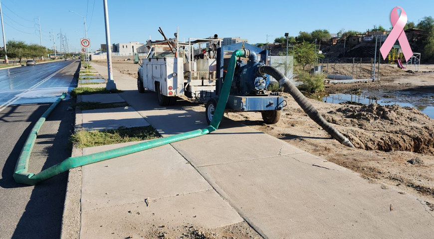 Mexicali, B.C. A 18 de octubre 2022 / Redacción.- La Comisión Estatal de Servicios Públicos de Mexicali (CESPM), continúa con los trabajos de bombeo de las colonias Agualeguas y El Vidrio, ubicadas a un costado del Río Nuevo, con el fin de controlar los escurrimientos posteriores a lluvia del sábado pasado.