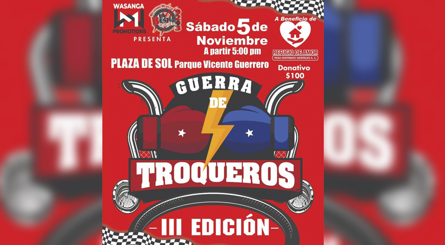 Mexicali, B.C. a 4 de noviembre de 2022 / Redacción.- Este sábado 5 de noviembre tendrá lugar el evento Guerra de Troqueros III Edición en las instalaciones del Parque Vicente Guerrero, las puertas abrirán al público a partir de las 5:00 p.m.