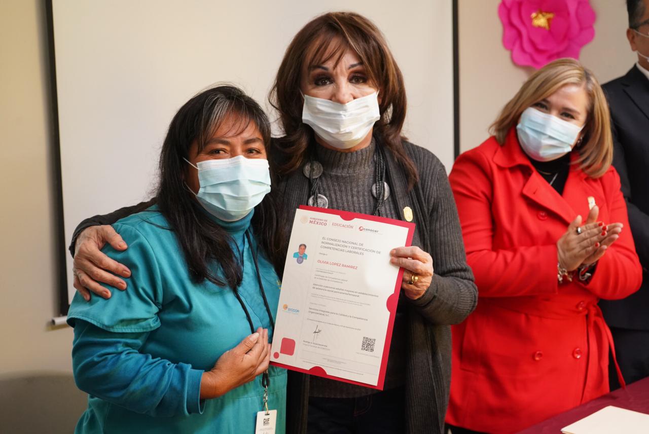 Asimismo, felicitó a las y los cuidadores del asilo por su esfuerzo y dedicación para cumplir con esta certificación, la cual, les permitirá brindarles mejores cuidados, así como, apoyarlos en diversas actividades que estimulen su desarrollo físico y mental.