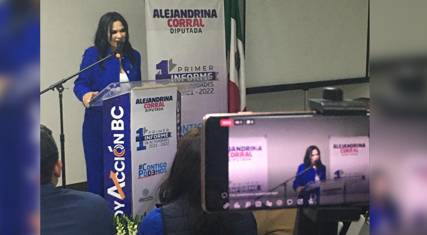 Mexicali, B. C., jueves 24 de noviembre de 2022 / Redacción.- El día miércoles 23 de noviembre, en punto de las 17:00 horas, ante ciudadanos del tercer distrito local, que corresponde al municipio de Mexicali, la diputada Santa Alejandrina Corral Quintero, Coordinadora del Grupo Parlamentario del Partido Acción Nacional, presentó su informe de actividades, dando a conocer los trabajos realizados en materia de legislación, fiscalización y gestión social.
