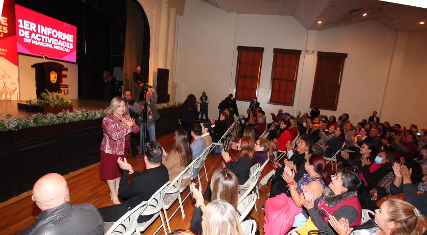 Mexicali, B.C. A jueves 01 de diciembre 2022 / Redacción.- En presencia de la alcaldesa de Mexicali Norma Bustamante Martínez, así como, de autoridades municipales, estatales y enlaces comunitarios, la presidenta del Patronato DIF Municipal Karla Edith González Navarro presentó su primer informe de actividades en el Teatro Salvador Caldera en la Casa de la Cultura.
