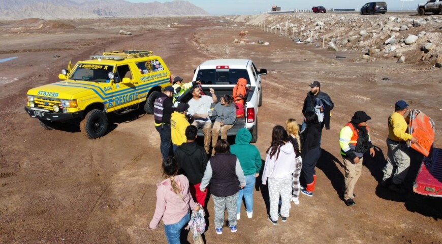 Mexicali, B.C. A 06 de diciembre 2022 / Redacción.- Un grupo de personas que fueron reportadas como extraviadas, fueron localizadas con vida dentro de la Laguna Salada en Mexicali, esto tras la oportuna coordinación de los elementos de rescate de Protección Civil Estatal, el Heroico Cuerpo de Bomberos de Mexicali, y Rescate Aguiluchos AC.