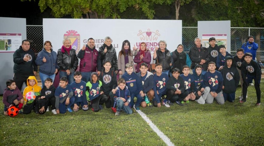 Por su parte, el director de Obras Públicas Alberto Ibarra Ojeda detalló que se llevaron a cabo diversas labores como la colocación de pasto sintético, porterías, malla, al igual que, la instalación luminarias y cerco perimetral.