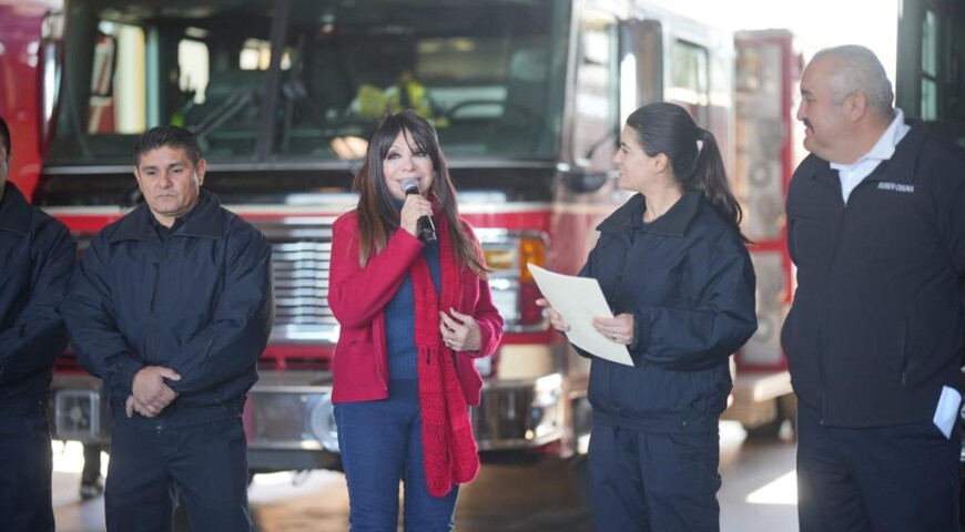 Mexicali, B.C. A miércoles 21 de diciembre 2022 / Redacción.- Cumpliendo su compromiso de fortalecer las capacidades del Heroico Cuerpo de Bomberos, la presidenta municipal Norma Bustamante Martínez realizó la entrega de 250 chamarras y equipamiento para la corporación, con un valor aproximado de un $1,348,980.86 de pesos.