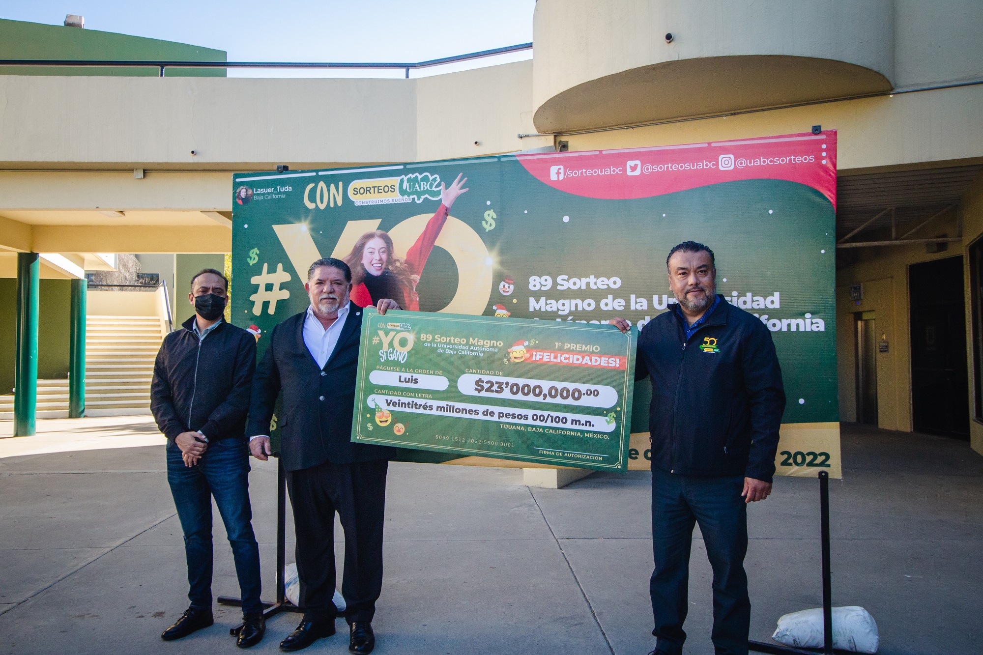 Tijuana, Baja California, miércoles 21 de diciembre de 2022 / Redacción.- Los ganadores del 89 Sorteo Magno de la Universidad Autónoma de Baja California (UABC) de Tijuana y Ensenada recibieron este día los premios principales a los que se hicieron acreedores el pasado 15 de diciembre cuando se llevó a cabo el sorteo.