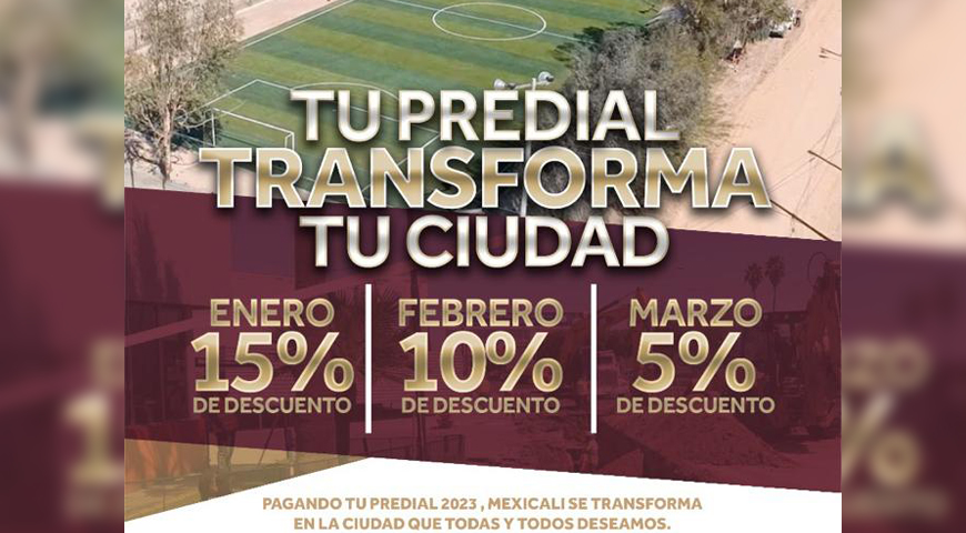 Mexicali, B.C. A miércoles 18 de enero 2023 / Redacción.- Las y los mexicalenses continúan aprovechando el 15% de descuento en el pago del impuesto predial durante este mes de enero, ante ello, el Gobierno Municipal invita a la ciudadanía a seguir realizando esta importante contribución para ampliar los servicios públicos y llevar a cabo más obras de pavimentación.