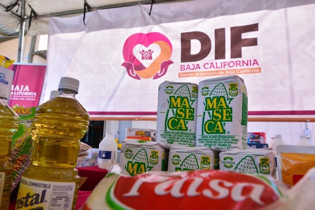 La presidenta de la paraestatal, Mavis Olmeda García, destacó que son ya 67.2 toneladas de alimentos, que corresponden a 9 mil 610 despensas, las que se han entregado a 18 albergues de Mexicali y Tijuana en lo que va de la actual administración.