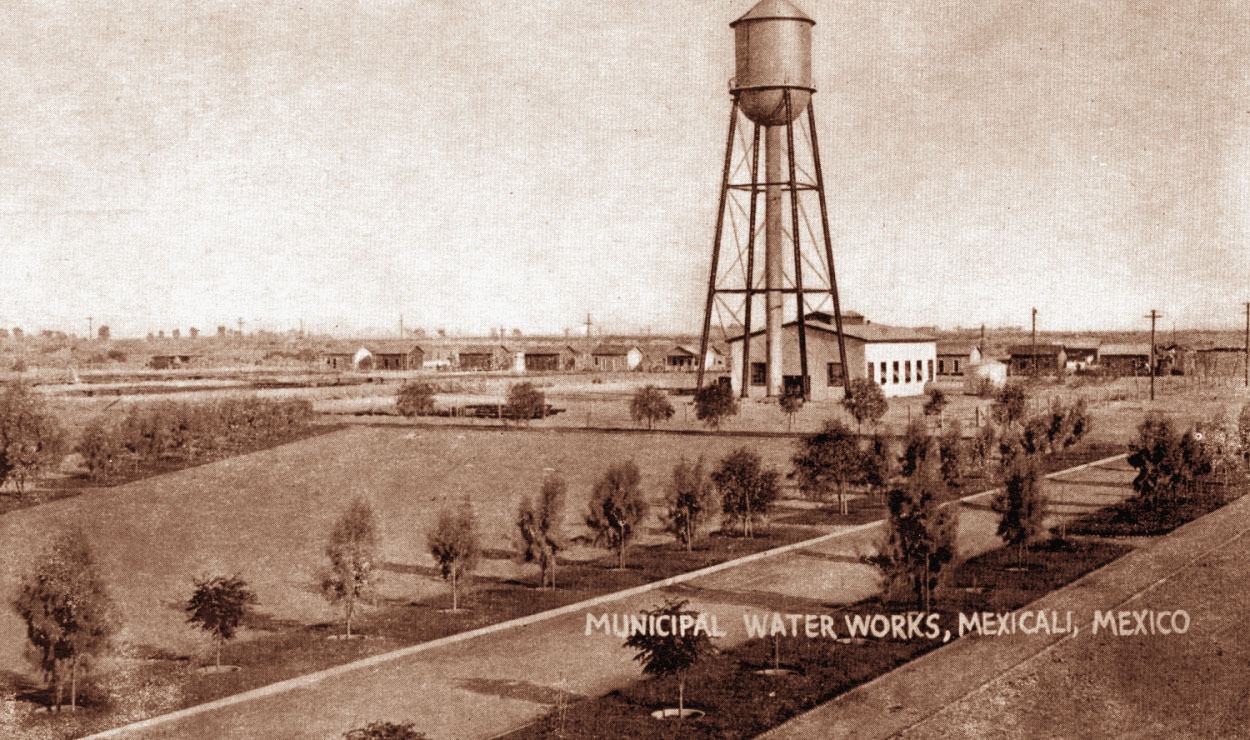 En 1921 se instaló tubería de madera para la conducción del agua de Calexico a Mexicali, la cual llegaba a través del canal El Álamo. Ese mismo año comenzó la construcción de la primera planta de bombeo de la ciudad, ubicada en las calles Zaragoza y Arista, por la calle F, donde hoy está la clínica del Instituto Mexicano del Seguro Social.