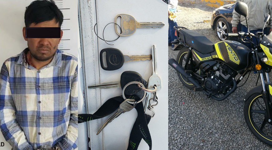 Con el despliegue operativo se logró ubicar a una personas en los instantes en que intentaba subir la motocicleta a la cajuela de un vehículo de color blanco, el hombre se identificó como Rigoberto “N” quien al acceder a la revisión precautoria se le encontraron 6 llaves de diferentes modelos, algunas de ellas limadas, frecuentemente utilizadas para el robo de vehículos.