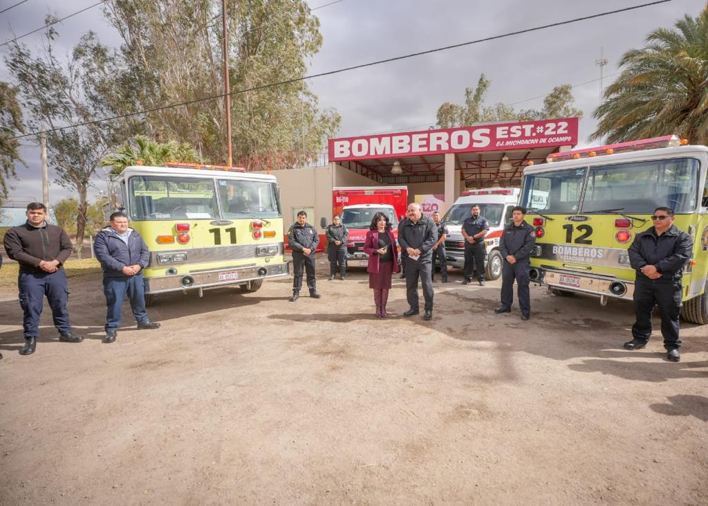 Mexicali, B.C. A 01 de marzo de 2023 / Redacción.- Como parte de las acciones encaminadas a ampliar la cobertura del Heroico Cuerpo de Bomberos, la presidenta municipal Norma Bustamante Martínez entregó dos máquinas extinguidoras y dos ambulancias.