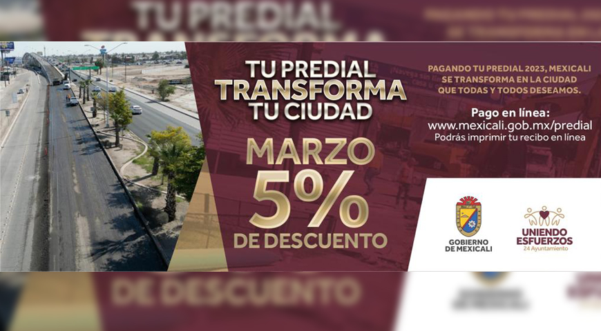 Mexicali, B.C. A jueves 02 de marzo 2023 / Redacción.- El Gobierno de Mexicali continúa manteniendo una respuesta positiva por parte de la ciudadanía en el pago del impuesto predial, logrando recaudar $540 millones de pesos en estos primeros dos meses del año, destacó el Subrecaudador de Rentas Municipal Jorge Mario Alcantar Ortiz.