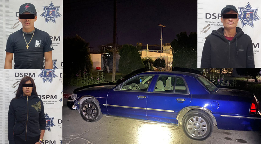 Mexicali, Baja California a lunes 06 de marzo del 2023 / Redacción.- La inmediata intervención de agentes de policía municipal desplegados en el operativo “Mexicali Seguro”, detuvieron a Juan Manuel “N” de 21, Karen Sabina “N” de 25 años y Eduardo “N” de 30 años, al ser interceptados en posesión de un vehículo de motor que cuenta con pre-denuncia de robo.