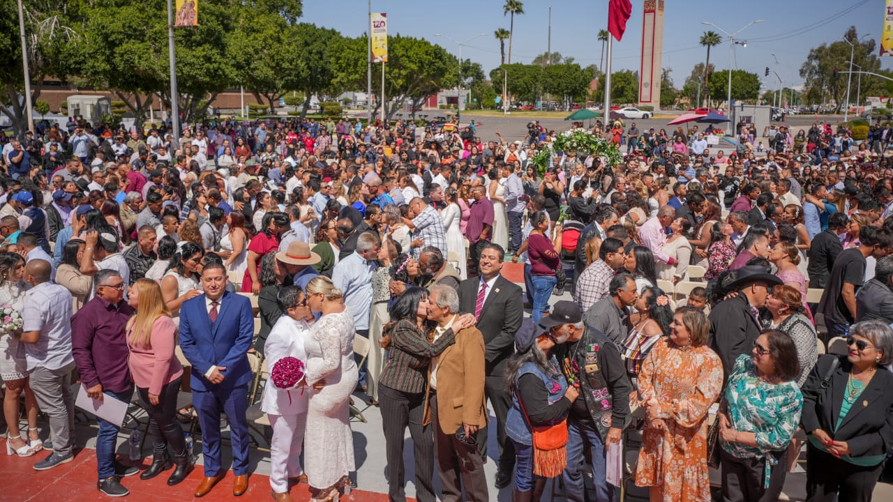 Mexicali, B.C. A sábado 25 de marzo de 2023 / Redacción.- En una emotiva ceremonia realizada en la explanada exterior del Palacio Municipal, la alcaldesa de Mexicali Norma Bustamante Martínez celebró la unión de 383 parejas a través de las Bodas Colectivas 2023.