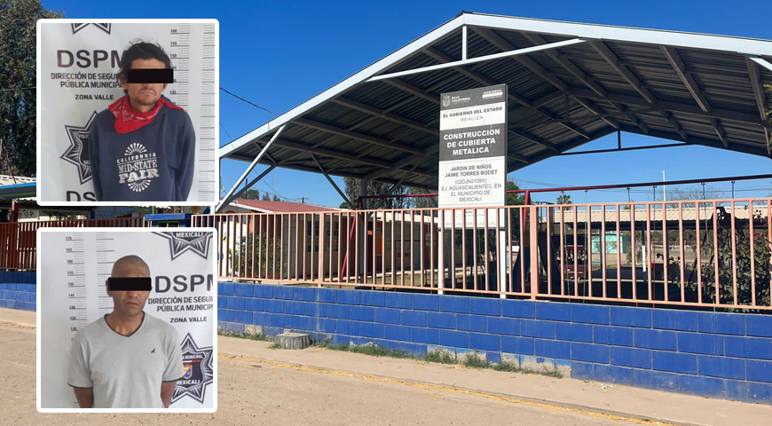 Mexicali, Baja California, a lunes 10 de abril de 2023 / Redacción.- Como resultado de la permanente implementación de acciones preventivas desarrolladas por Policías Municipales, se logró el aseguramiento de dos sujetos que fueron sorprendidos sin autorización al interior de un plantel educativo en la zona sur del valle de Mexicali.