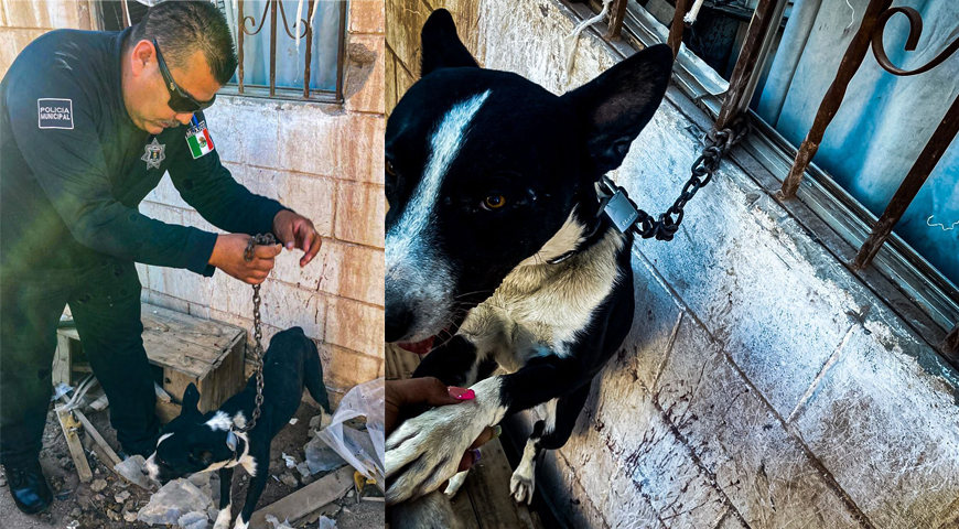 Inmediatamente tras confirmar lo denunciado, se activó el protocolo de actuación correspondiente, al no localizar al propietario del domicilio y ante el riesgo latente de una asfixia del cachorro, priorizando salvar su vida, oficiales de policía ingresaron al inmueble para desatarlo y ponerlo bajo resguardado.