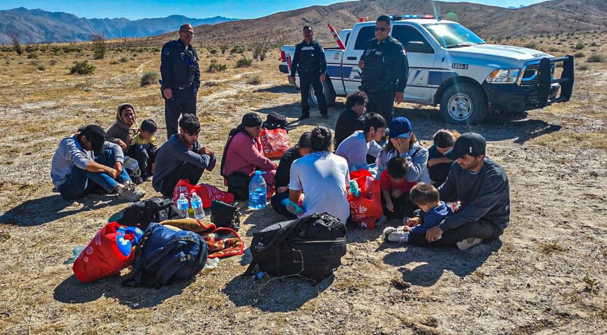 Mexicali, Baja California a lunes 17 de abril del 2023 / Redacción.- La Dirección de Seguridad Pública Municipal de Mexicali (DSPM), a través de los operativos de inspección y vigilancia en la zona fronteriza logró el rescate de familias originarias de Afganistán, tras ser ubicadas en estado de vulnerabilidad en una zona desértica al oeste del municipio, a un costado del cerco fronterizo con los Estados Unidos.