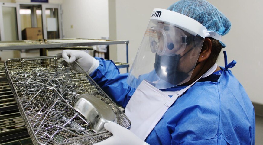 Además de llevar a cabo lavado manual conforme lo recomiendan las regulaciones nacionales e internacionales, se cuenta con dos esterilizadores de vapor, uno de óxido de Etileno y uno de peróxido de Hidrógeno para llevar a cabo la esterilización.