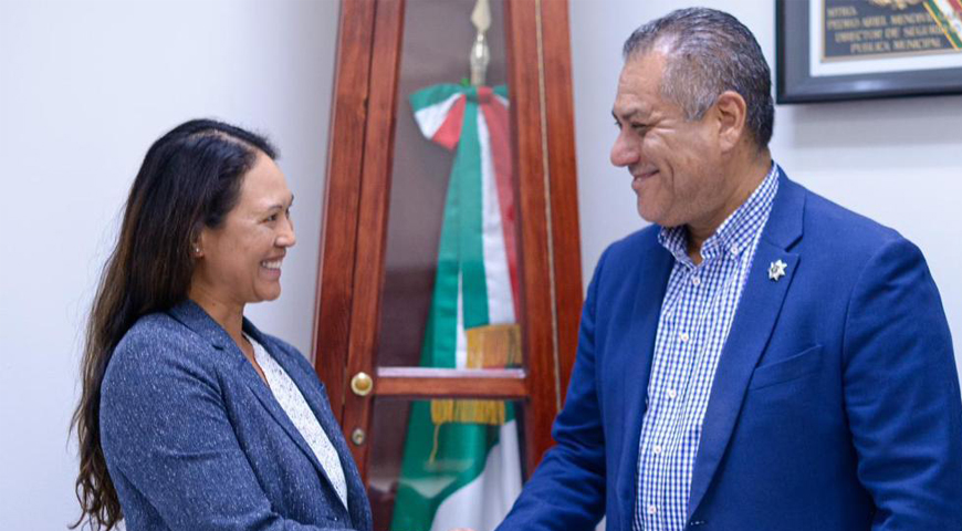 Para reforzar la agenda binacional entre la DSPM y el Consulado de los Estados Unidos, el Director de Policía Municipal, Mtro. Pedro Ariel Mendívil recibió en la comandancia central a Joann Topacio, Agregada de Seguridad Diplomática, así como los asistentes de Seguridad Diplomática Eduardo Godínez, Josh Burns y Jorge Montiel, con quienes compartieron las estrategias de inteligencia como base de la operatividad en el combate a la criminalidad.