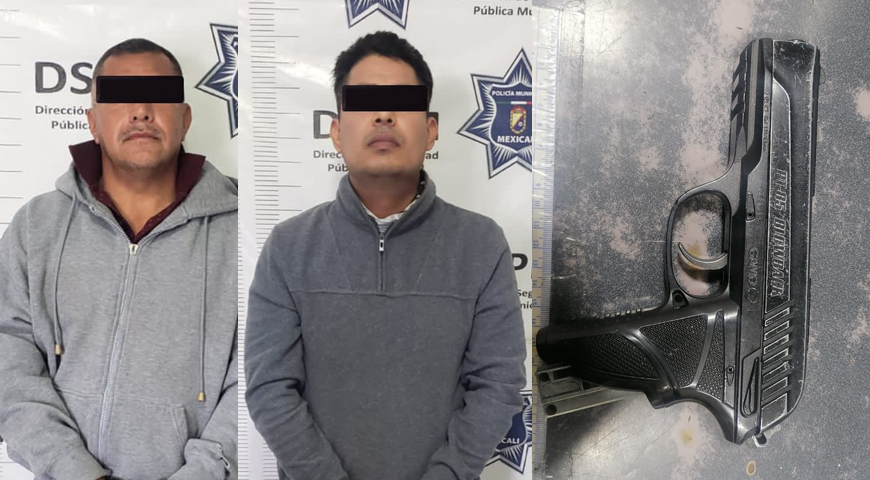 Ante el señalamiento directo y tener a la vista a los aparentes involucrados, se procedió a su detención y revisión precautoria, encontrándoles entre sus pertenencias un arma tipo pistola de utilería de color negro, por lo que fueron detenidos por su probable responsabilidad en la tentativa de robo con violencia para ser puestos a disposición de la autoridad investigadora.