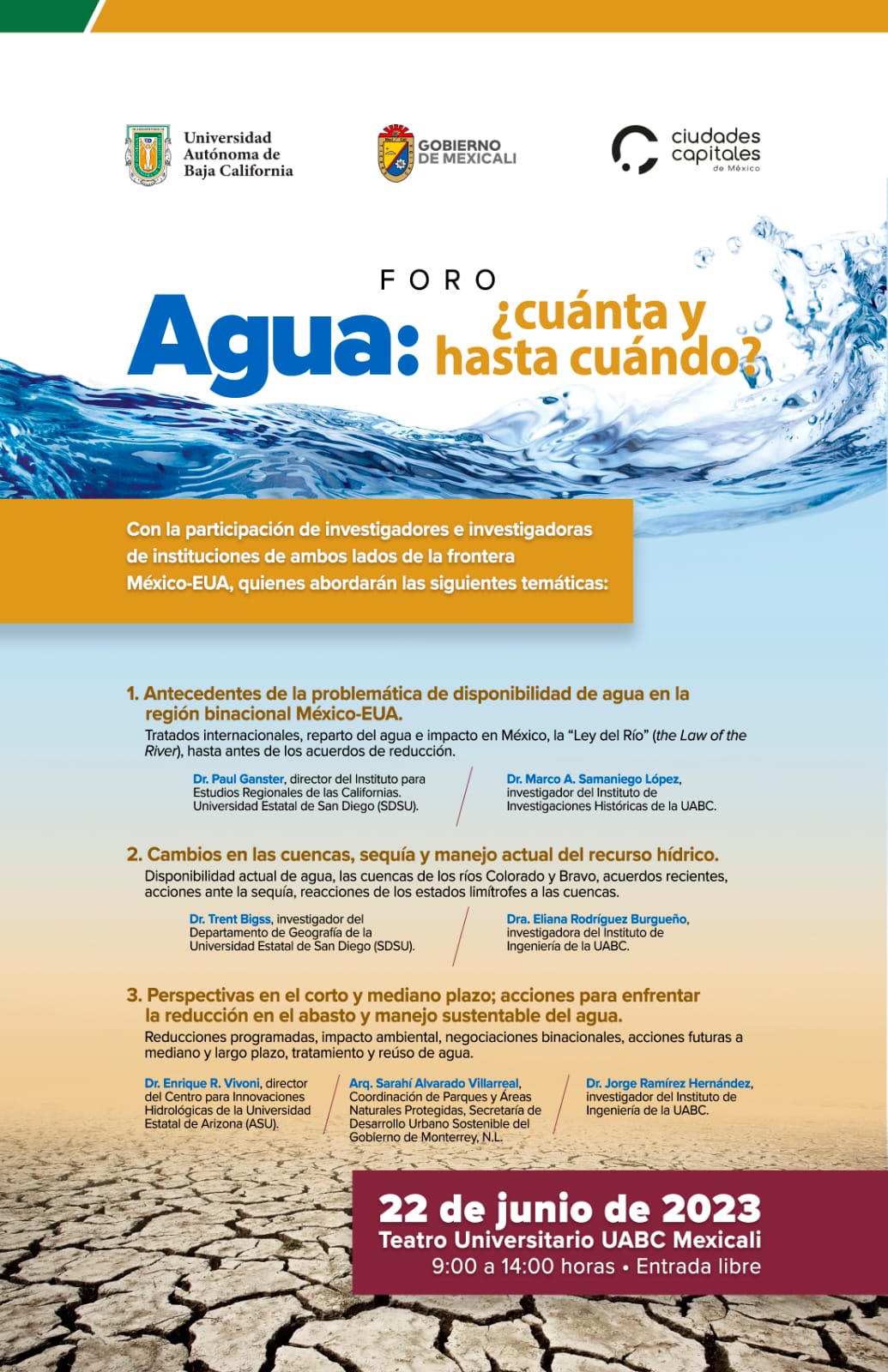 Mexicali, B.C. A martes 13 de junio del 2023 / Redacción.- Con el propósito de informar sobre la situación actual de los recursos hídricos en el país, la alcaldesa de Mexicali Norma Bustamante Martínez anunció la realización del foro “Agua: ¿cuánta y hasta cuándo?”, este próximo jueves 22 de junio.