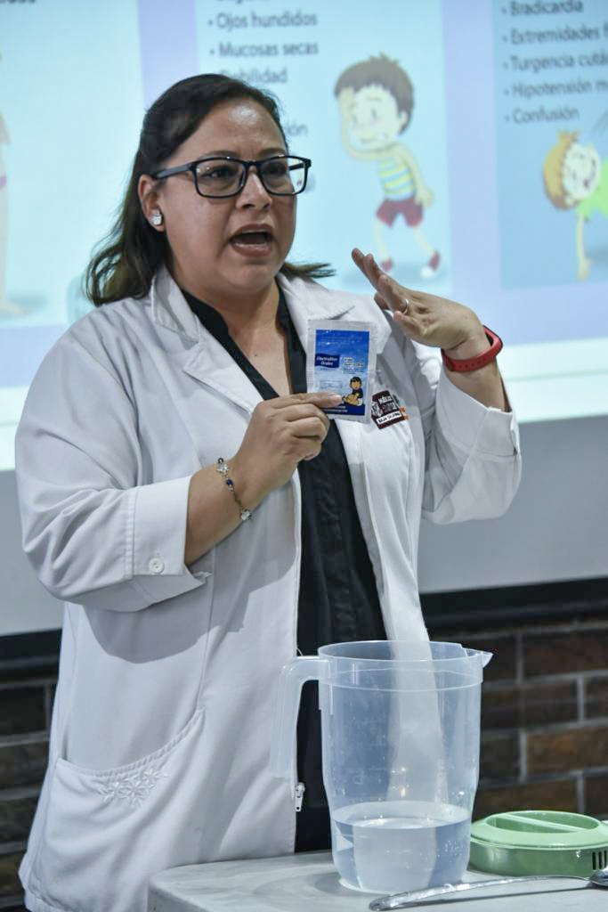 Personal de salud compartió a los oficiales de policía los beneficios que ofrece Vida Suero Oral, la forma correcta de preparación así como el método adecuado de ingerirlo ante una deshidratación, además de explicar los diferentes tipos que existen los cuales van de leve a moderada hasta severa, los síntomas que se presentan en las víctimas y cómo actuar de una manera correcta para ayudarlos a salvar sus vidas.