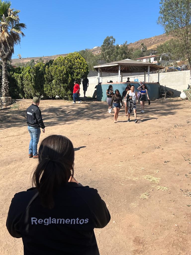 Por instrucciones de la alcaldesa Montserrat Caballero Ramírez y del secretario de Gobierno Municipal, Miguel Ángel Bujanda Ruiz, inspectores municipales realizaron una supervisión en un salón al aire libre ubicado sobre calle Primero de Diciembre, al Este de la ciudad, en el que se llevaba a cabo una reunión tipo albercada.