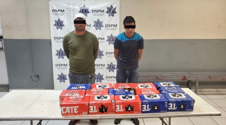 Mexicali, Baja California a jueves 3 de agosto del 2023 / Redacción.- Tras reportarse un robo a comercio en la colonia Constitución, oficiales de seguridad pública desplegaron una persecución de contención que llevó a la detención de Juan José “N” de 26 años y Jesús Santiago “N” de 26 años, señalados por sustraer mercancía sin pagar, apoderándose de 15 cartones (12 pack) de cerveza; en el intento de huida los presuntos responsables impactaron contra un domicilio.