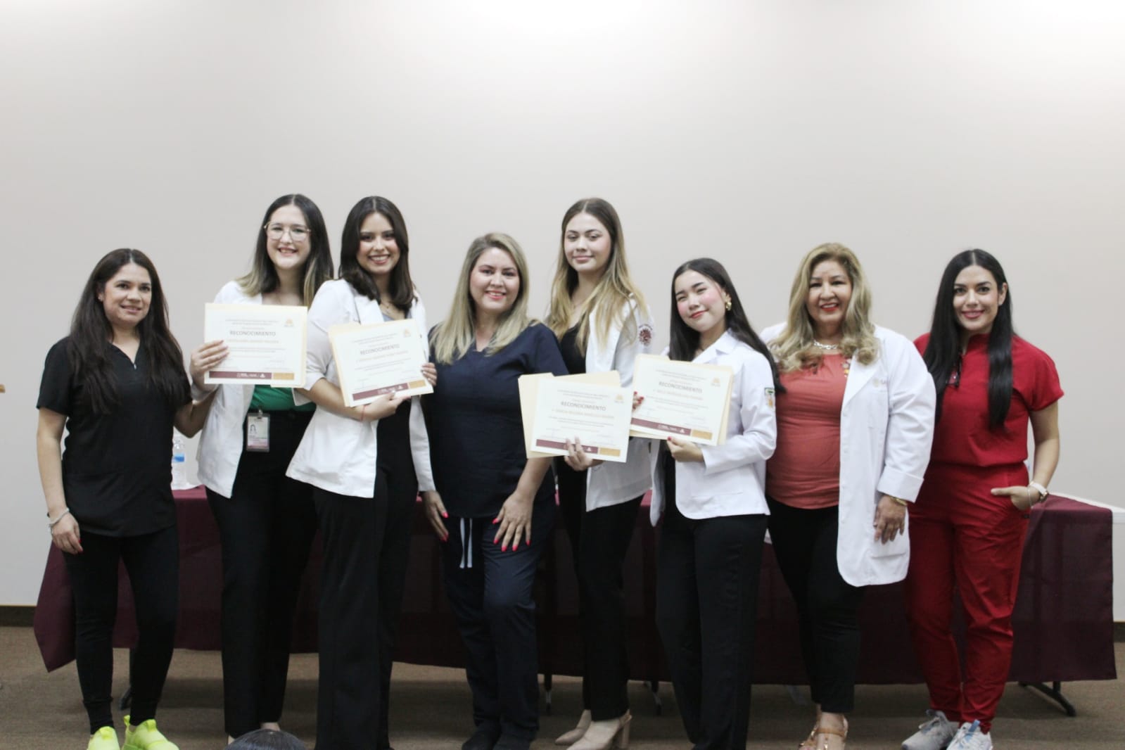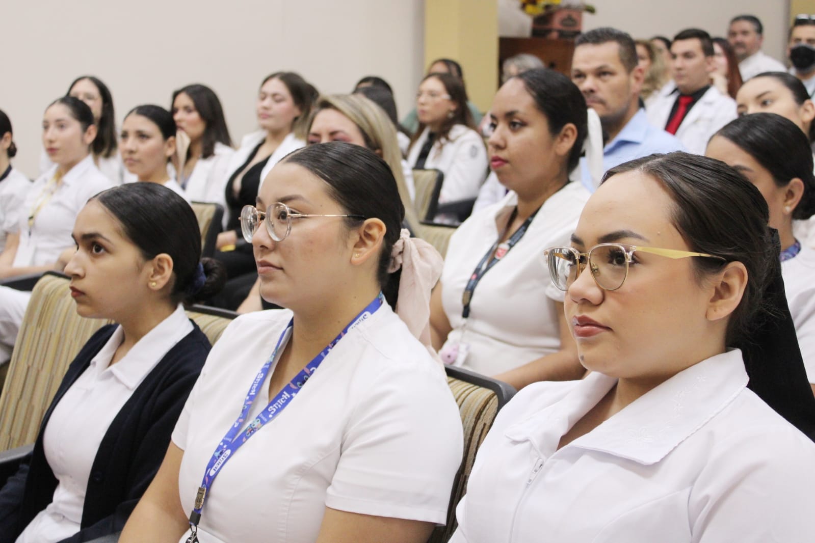 En la ceremonia estuvieron presentes, el jefe de enseñanza de Hospital General de Mexicali, Diego Fernando Ovalle Marroquín, Catalina González Quintor, coordinadora de enseñanza en enfermería, Irma Rodríguez Montoya, Blanca Martínez Herrera, jefa de nutrición y Fausto Negrete García, jefe de servicio de fisioterapia.