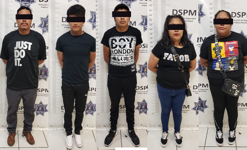 Mexicali, Baja California, a lunes 28 de agosto de 2023 / Redacción.- La inmediata coordinación desarrollada por agentes de la Dirección de Seguridad Pública Municipal de Mexicali (DSPM), logró la detención de Josué “N” de 20 años de edad, Jhon “N” de 42 años, Aldo “N” de 23, Gabriela “N” de 39 años y Michell “N” de 34 años de edad, presuntos responsables de un robo a comercio, lo que permitió detectar que se presume su participación en hechos similares registrados en días pasados.