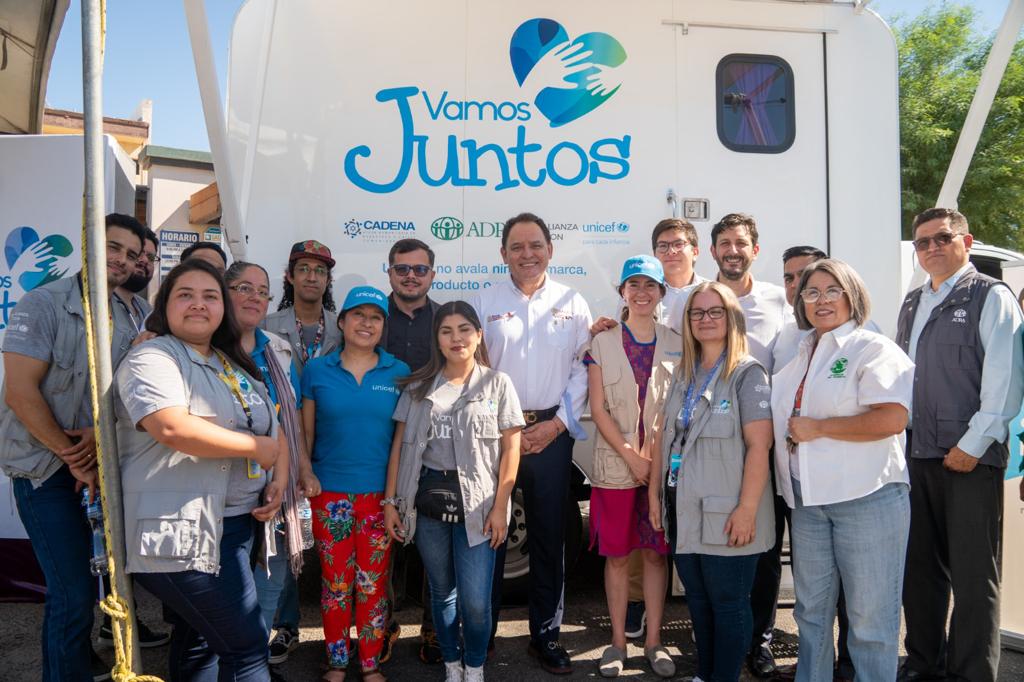 Para dar continuidad al proyecto, el secretario de Salud y director General del ISESALUD, J. Adrián Medina Amarillas, recibió por parte del representante de UNICEF en México, Fernando Carrera Castro, una Unidad Médica Móvil, que atenderá a la población en contexto de vulnerabilidad, que arribe a Mexicali, con equipo médico, de nutrición, odontología y psicología, misma que viene a sumarse a la unidad móvil que atiende a niñas, niños y adolescentes migrantes en el municipio de Tijuana.