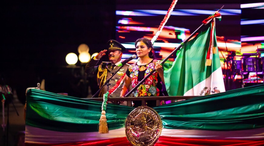 Después del grito de Independencia, la munícipe ondeó la bandera para rememorar el periodo de la historia de México, conocido como la Guerra de Independencia y escuchó la entonación del Himno Nacional Mexicano.