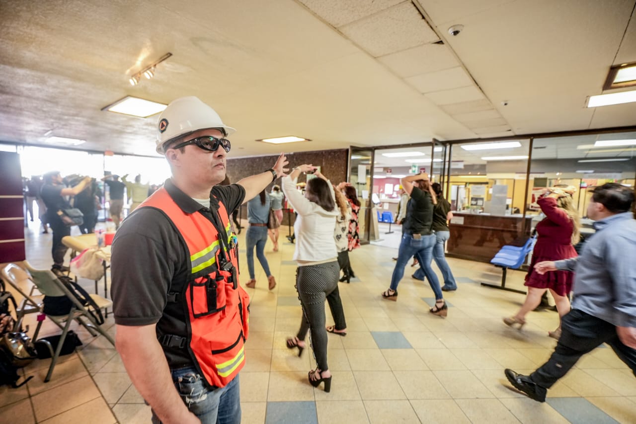 El Titular de la Unidad Municipal de Protección Civil (UMPC) Capitán René Salvador Rosado indicó que, durante el ejercicio de simulación de sismo lograron evacuar del edificio de Palacio Municipal a 507 empleados y 200 usuarios en un tiempo de tres minutos y 47 segundos.