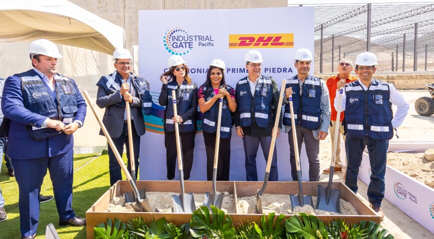 En la colocación de la primera piedra estuvieron también Rodolfo Andrade Pelayo, subsecretario de Economía e Innovación de Baja California, Alejandro Raya, vicepresidente de Desarrollos de Nuevos Negocios de Supply Chain de DHL, Guillermo Espinoza, senior director de DHL Real Estate Solutions, y Cristina Hermosillo, presidenta de DEITAC.