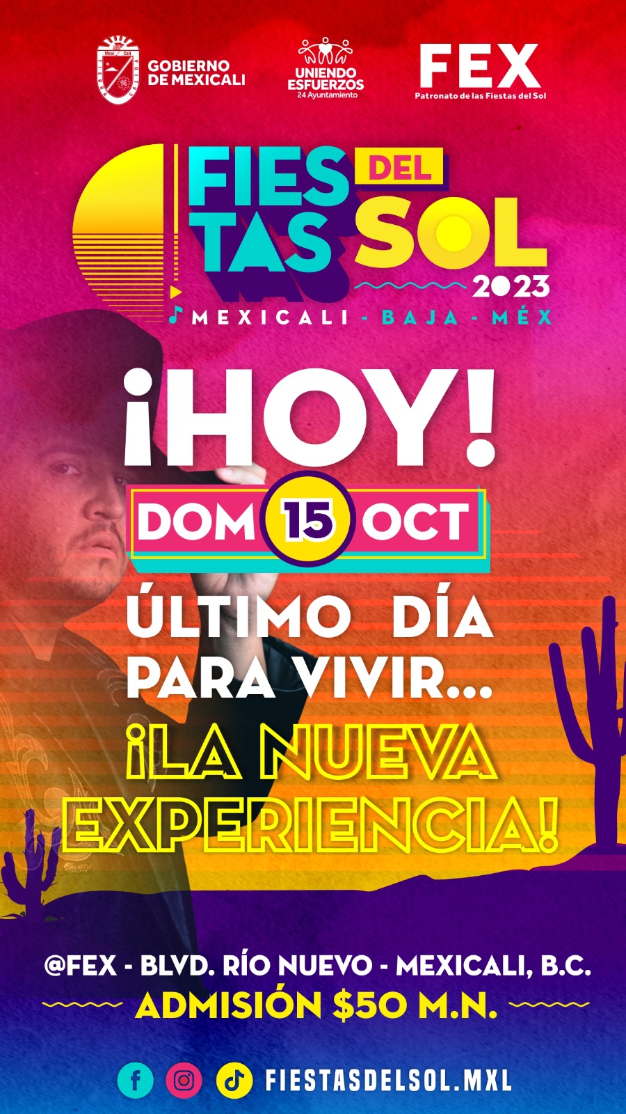 Mexicali, B.C. A 15 octubre 2023 / Redacción.- Miles de mexicalenses acudieron a disfrutar de las Fiestas del Sol número 47, las cuales esta noche finalizan con la presentación de Edén Muñoz en la Isla de las Estrellas, anunció el director del FEX Ismael Castro.