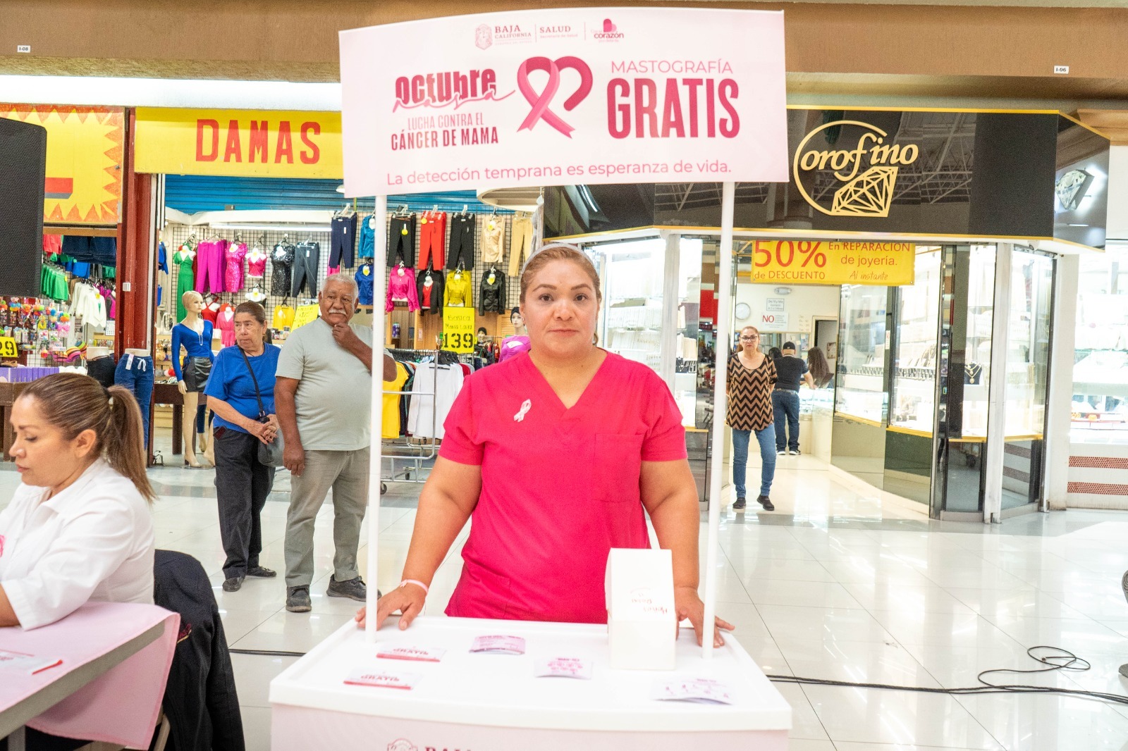 Mexicali, B.C. A 23 de octubre 2023 / Redacción.- Con el fin de seguir brindando detecciones oportunas del Cáncer de Mama, autoridades de la Jurisdicción de Servicios de Salud de Mexicali (JSSM) informan que sigue activo el Módulo Rosa ubicado en Plaza La Cachanilla durante el mes de octubre.