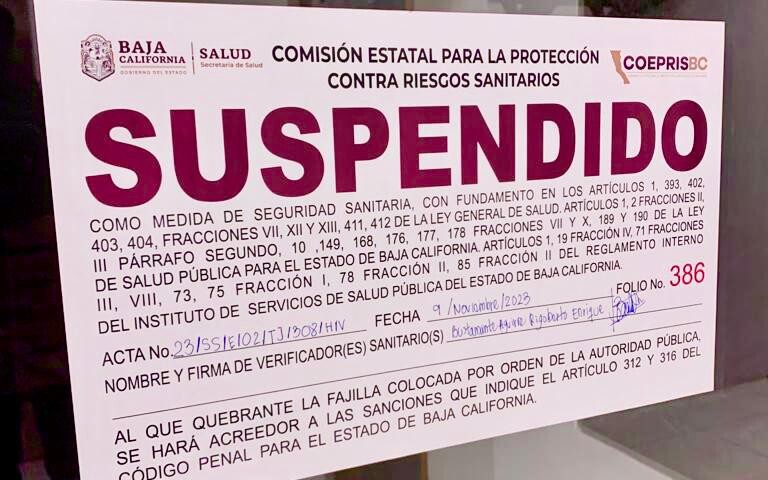 El consultorio médico, que se ubica en avenida David Alfaro Siqueiros 2643 de la Zona Urbana en Río Tijuana, fue suspendido en el operativo conjunto con la Fiscalía General del Estado (FGE) y al no ser atendidos en la visita realizada el jueves, se procedió a la instalación de sellos de forma preventiva, para dejar el expediente abierto y realizar la verificación.