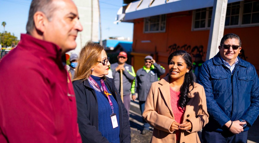 La munÃcipe explicó que de manera simultánea se trabaja en colonias de las nueve delegaciones, por lo que este dÃa además de trabajar en la avenida Matamoros de la colonia Independencia, también personal de la Dirección de Obras e Infraestructura Urbana Municipal (DOIUM), se encuentra en avenida Parque Azteca Norte.