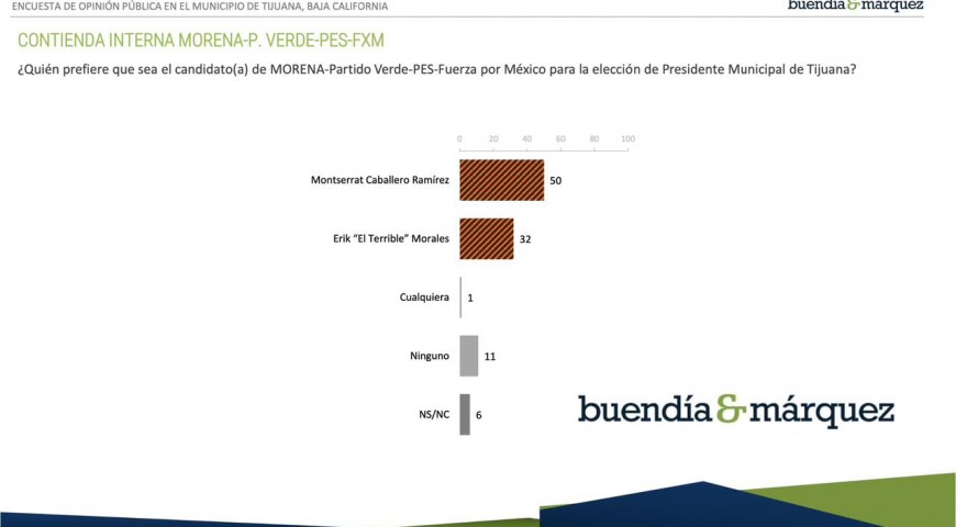 Tijuana, B.C., a 11 de enero de 2023 / Redacción.- La ventaja de Montserrat Caballero para ser la candidata de la coalición Seguimos Haciendo Historia para la alcaldÃa crece a 18 puntos sobre su principal competidor.