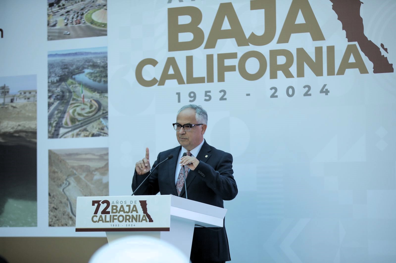 Mexicali, B.C. A 16 de enero 2024 / Redacción.- En representación de la gobernadora Marina del Pilar Avila Olmeda, el secretario general de Gobierno, Alfredo Ãlvarez Cárdenas, encabezó la ceremonia de conmemoración del 72 Aniversario de Baja California, en las instalaciones del edificio de la RectorÃa de la Universidad Autónoma de Baja California (UABC) en la ciudad de Mexicali, patrimonio cultural de la entidad.