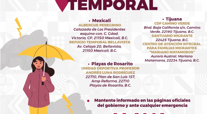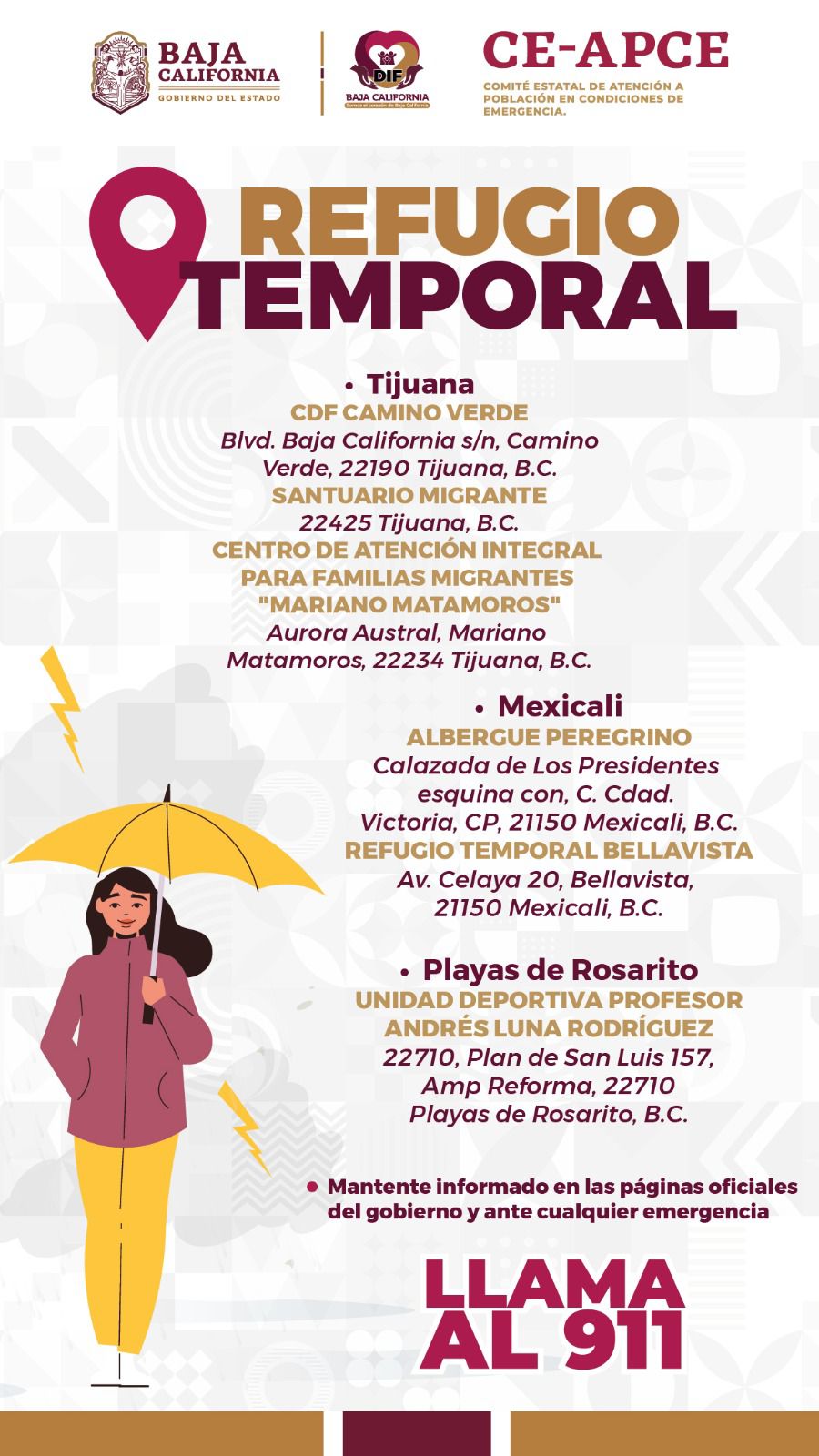 En Playas de Rosarito el Ayuntamiento habilitó la Unidad Deportiva Profesor Andrés Luna RodrÃguez, mientras que en Mexicali el DIF Municipal recibirá a las en el Albergue Peregrino y el Refugio Temporal Bellavista.