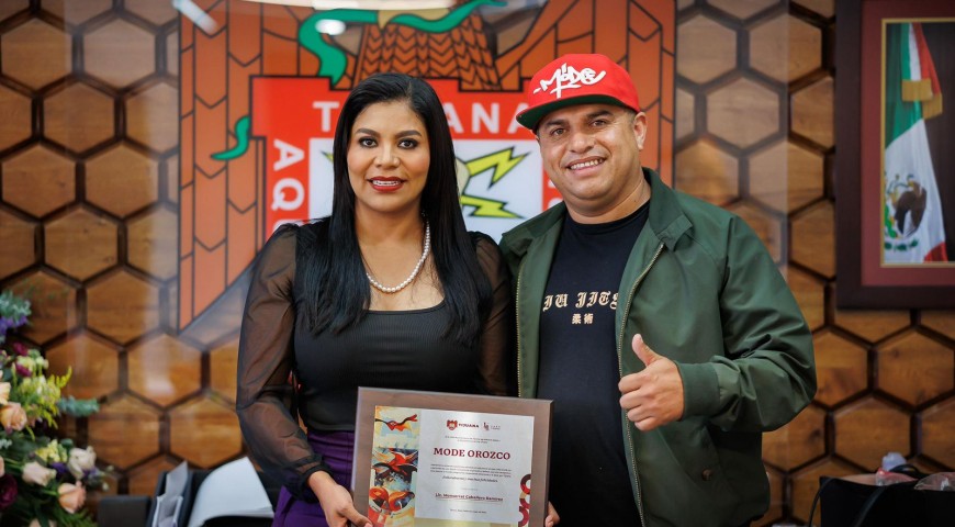 Tijuana, Baja California, a 21 de mayo de 2024 / Redacción.- La alcaldesa Montserrat Caballero Ramírez entregó un reconocimiento al artista urbano Mode Orozco, por contribuir a la transformación y embellecimiento de Tijuana con su trabajo y talento, plasmado en más de treinta murales realizados por él en distintos puntos de la ciudad.